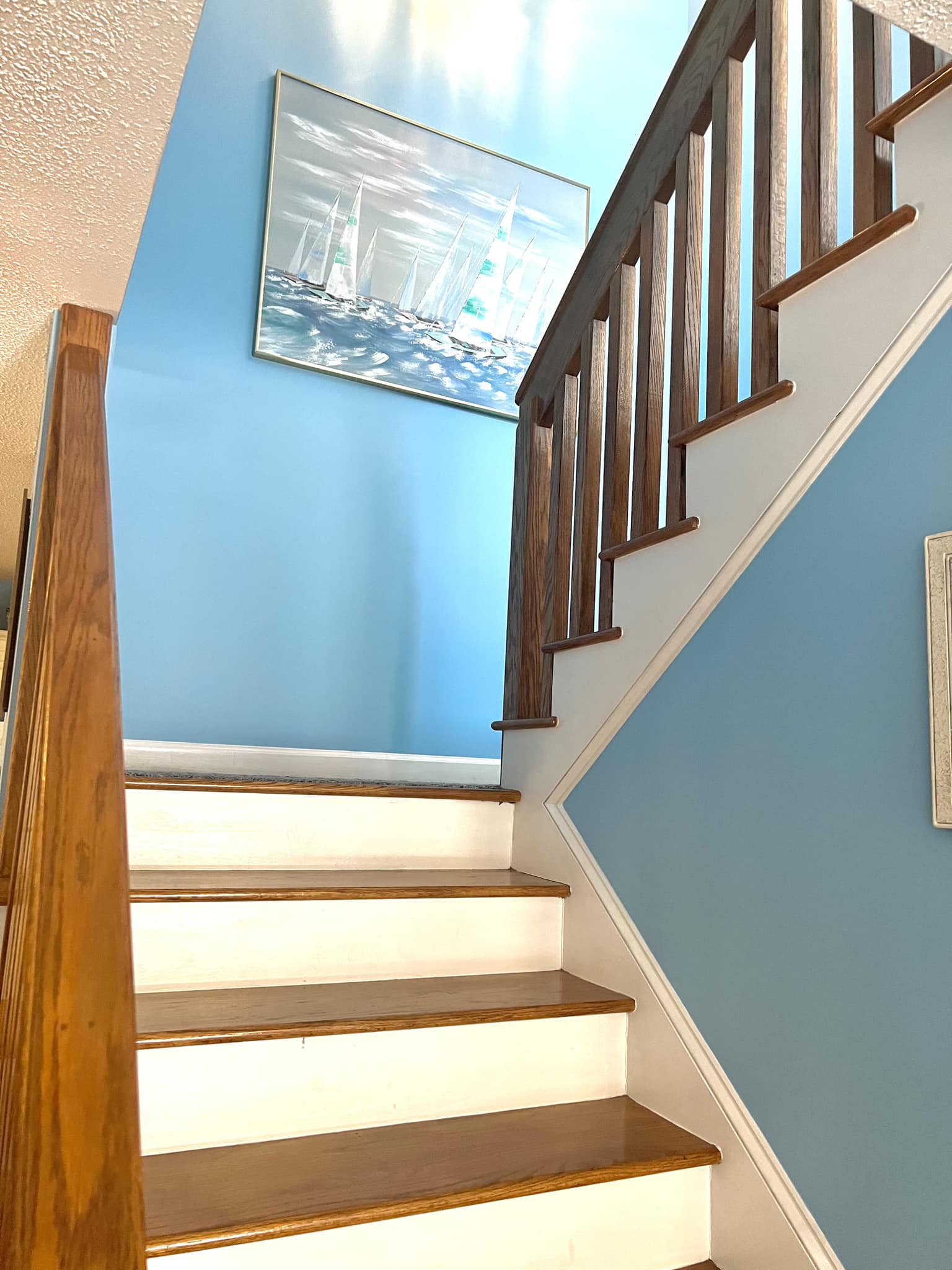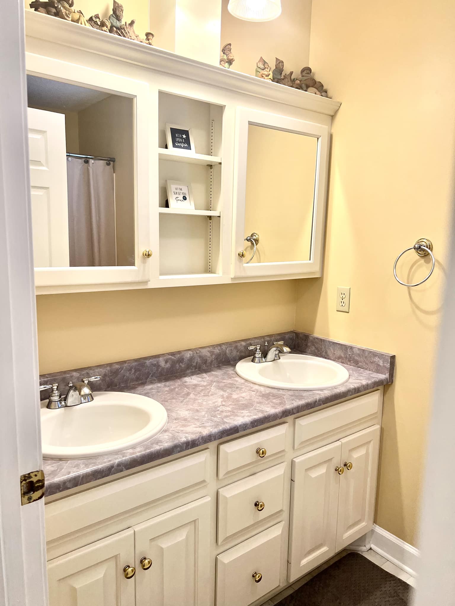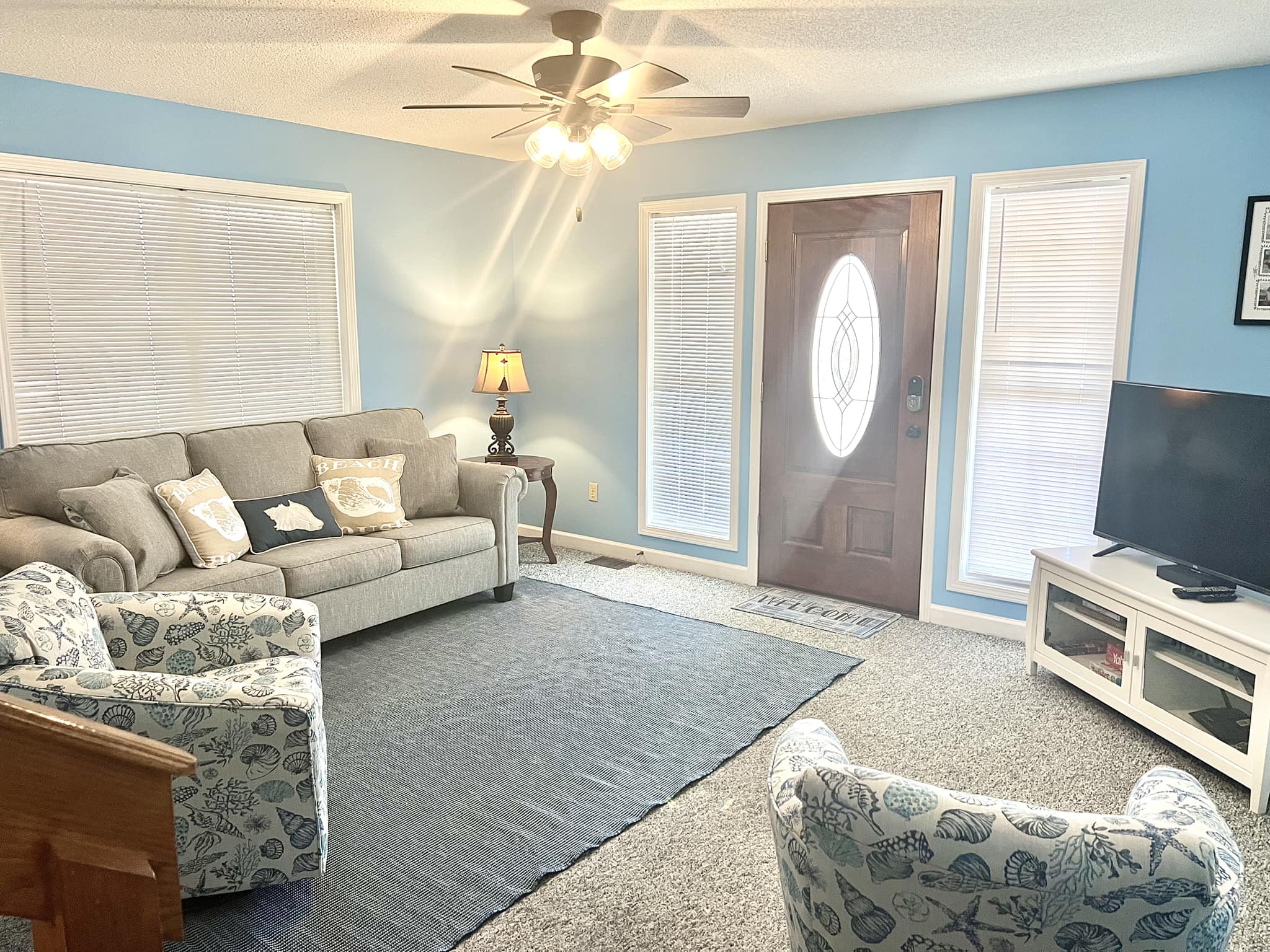 There are two separate living areas in this home, one on the main floor as well as one on the second floor which also has a bonus mini kitchen that includes a mini fridge, microwave, and sink.