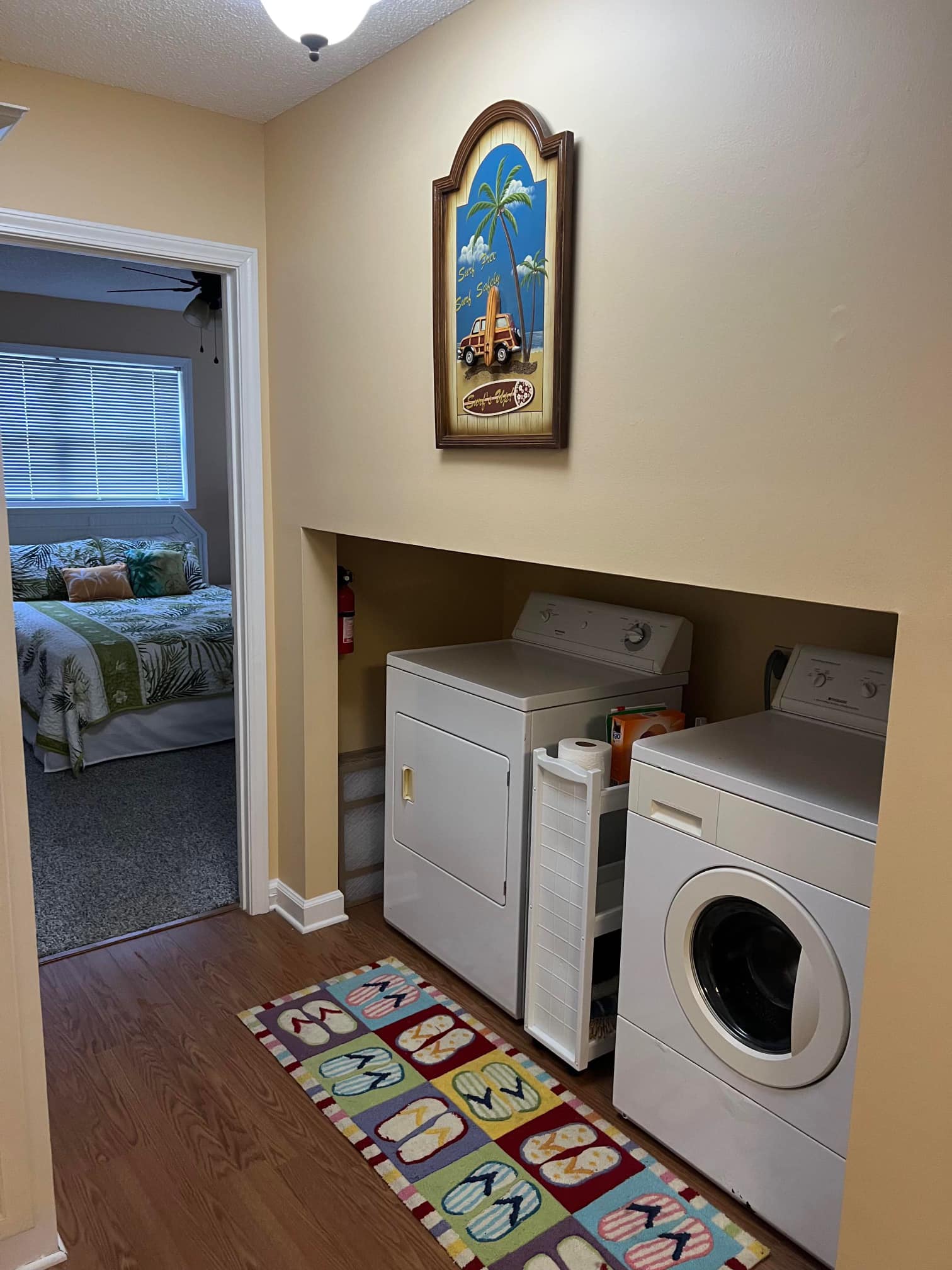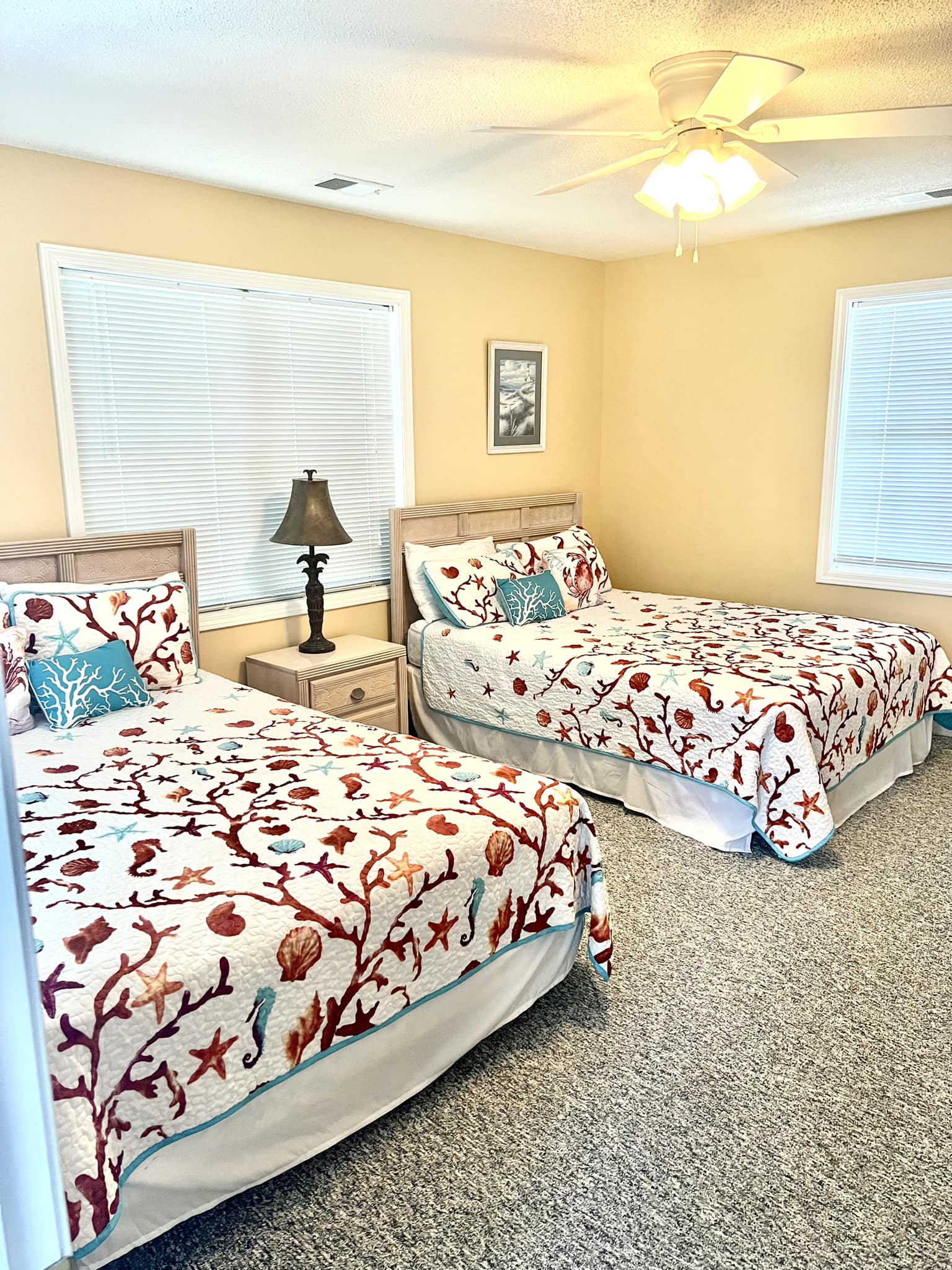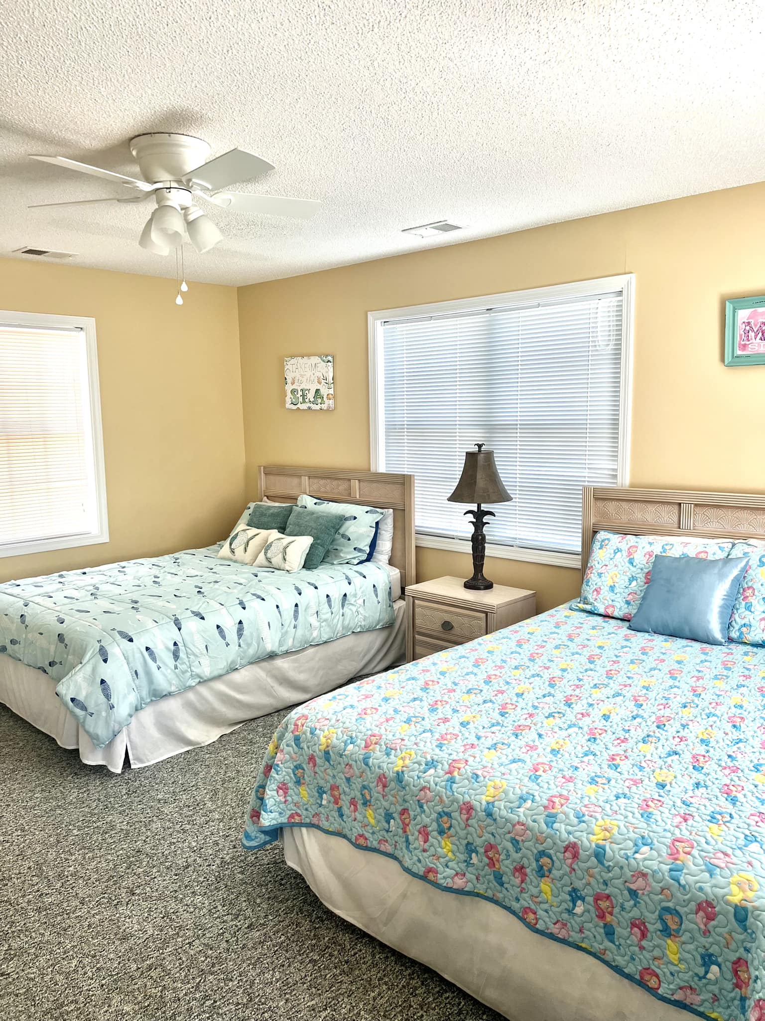 Upstairs offers two bedrooms (both have 2 queen beds each) that have an attached jack and Jill bath, plus the extra bonus mini kitchen and living room.
